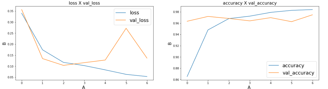 plot_learning_curves(history, [['loss', 'val_loss'],['accuracy', 'val_accuracy']])