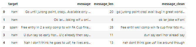 df['message_clean'] = df['message_clean'].apply(preprocess_data)