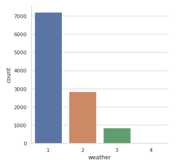 다섯번쨰로 temp와 atemp는 자전거 수요에 영향을 크게 미칩니다.